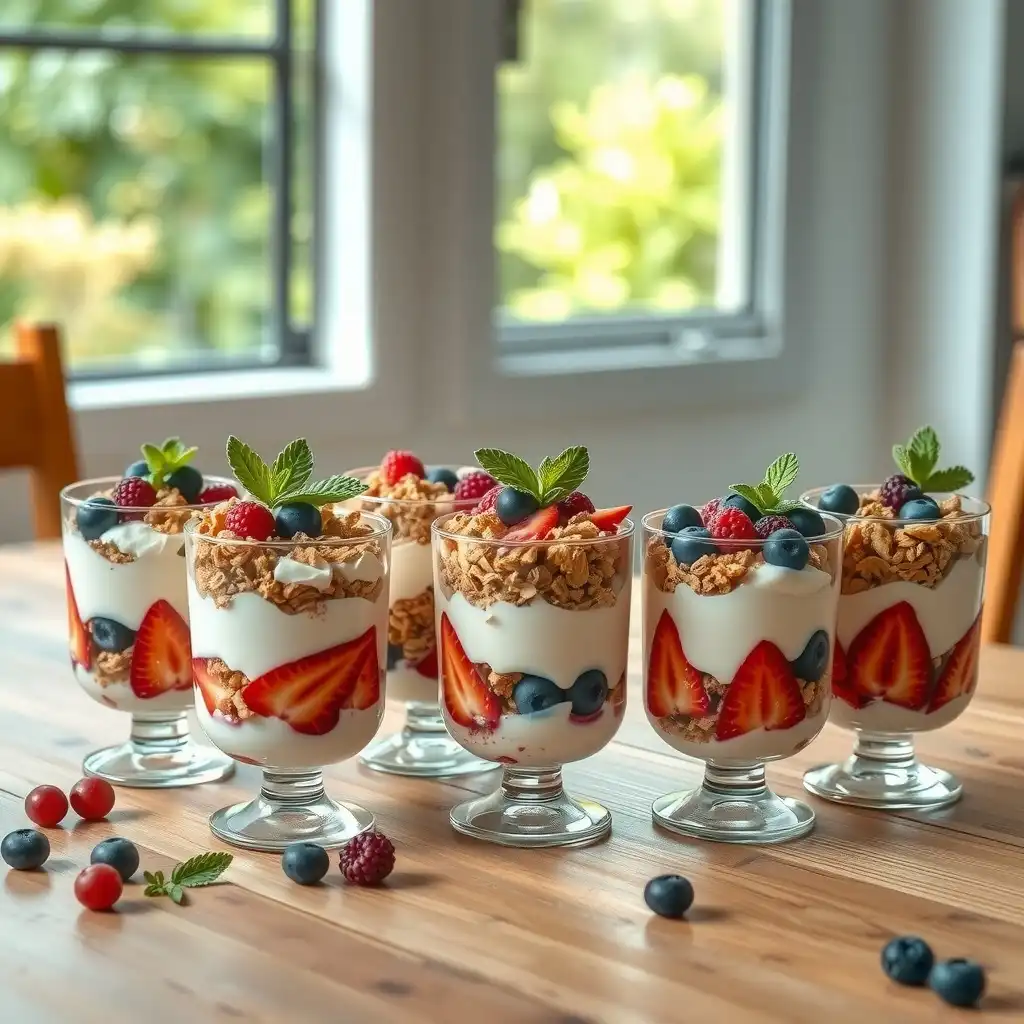 Decora cada parfait con unas hojitas de menta fresca para un toque de frescura y color.