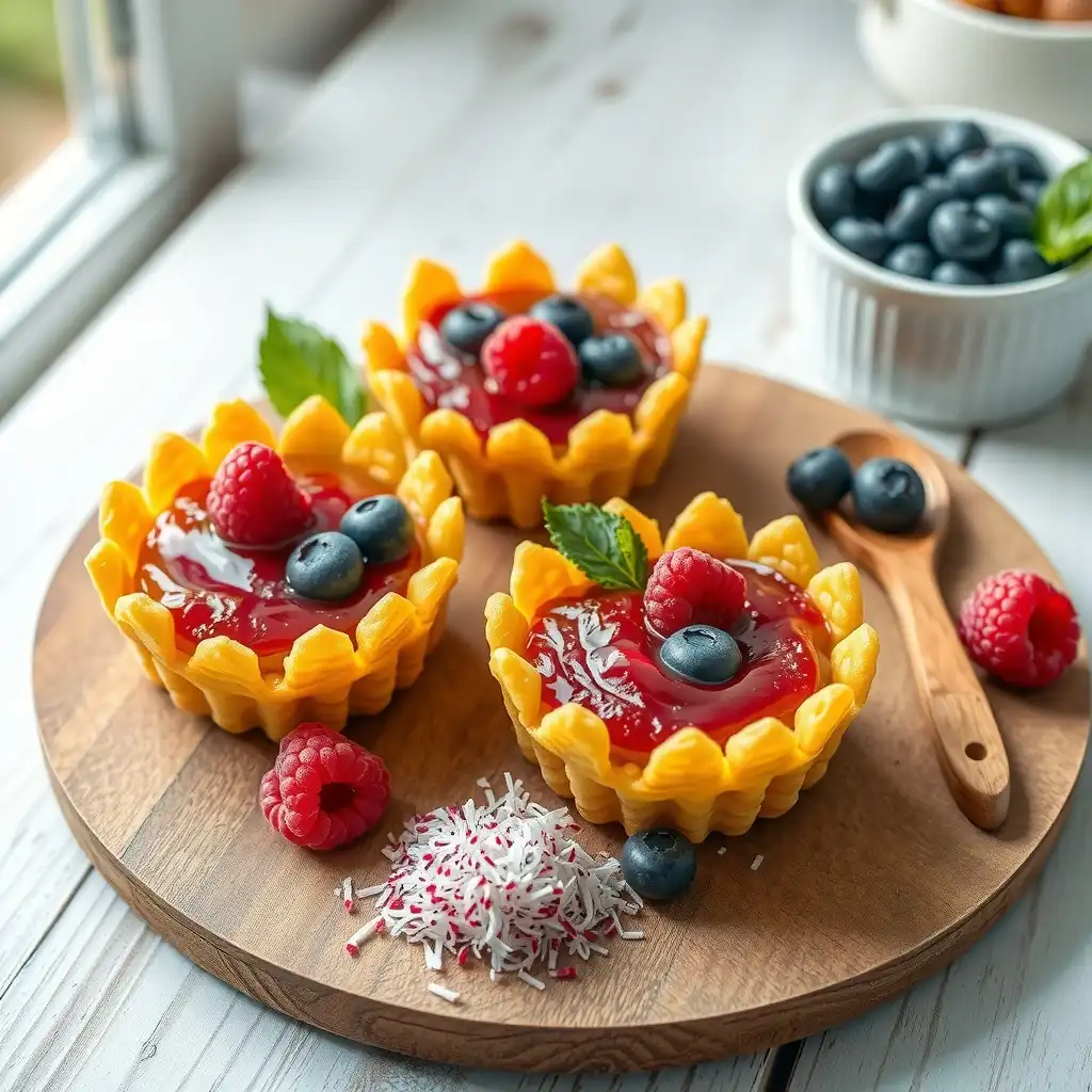 Montaje: Forma nidos con el maíz crujiente en platos individuales. Rellena generosamente con la crema de maíz. Vierte un poco de salsa de frambuesa sobre la crema y corona con arándanos frescos y una hoja de menta.