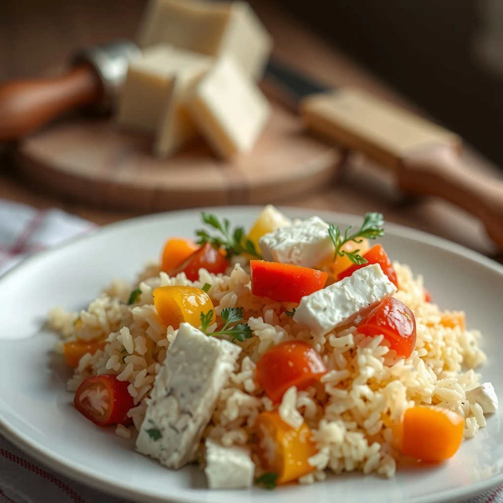 Servir inmediatamente en platos hondos, asegurándose de que cada porción tenga una buena cantidad de vegetales y queso feta. Se puede decorar con unas hojas de perejil fresco adicionales.