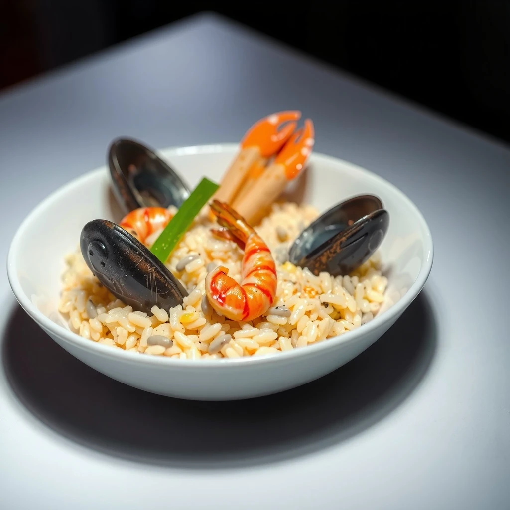Incorporar los mariscos cocidos al risotto. Añadir el resto de la mantequilla y el Parmesano rallado, revolviendo vigorosamente para emulsionar (mantecare).