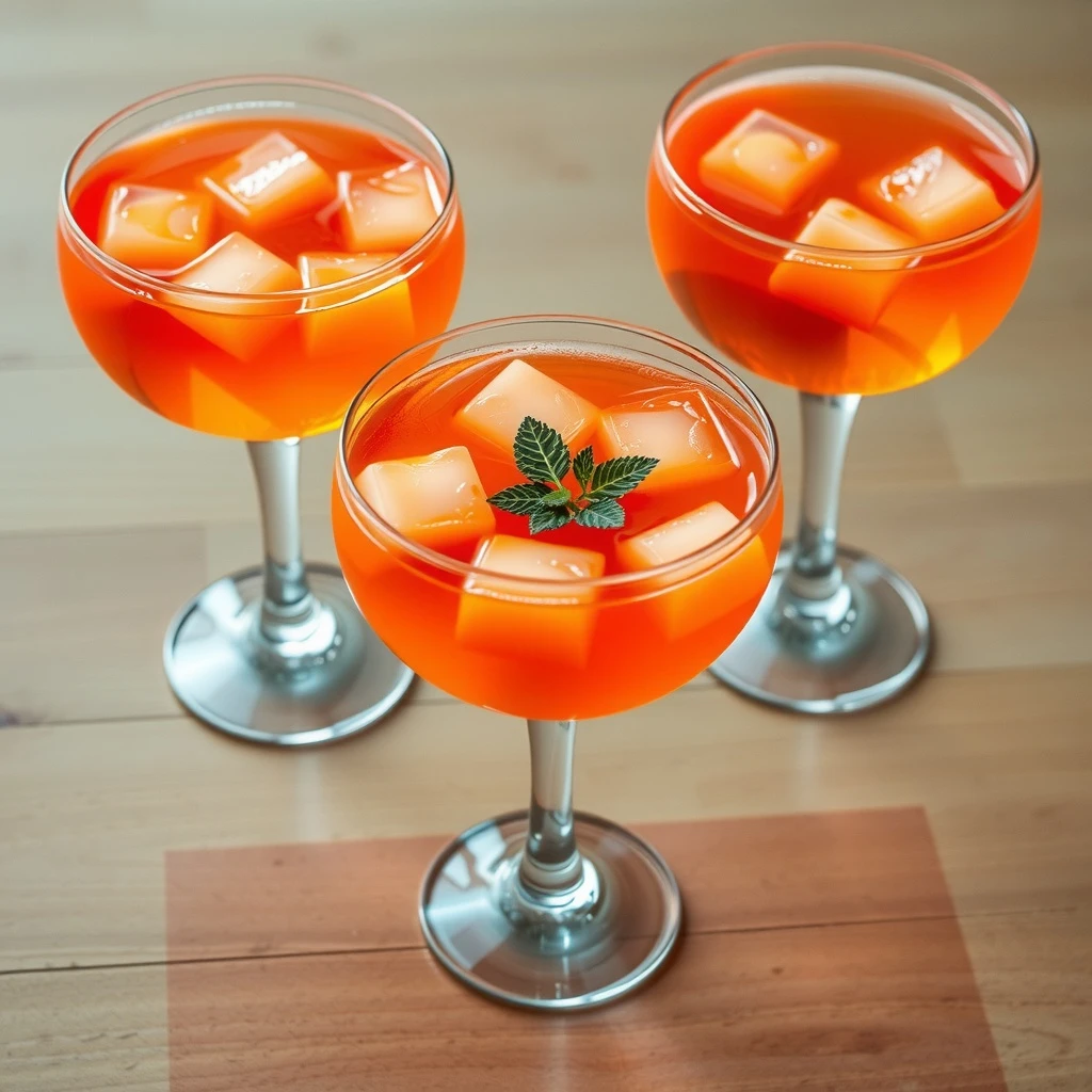 Cuela la mezcla enfriada en copas altas de diseño elegante. Vierte lentamente para asegurar que el hielo no pase a las copas, pero los jugos se distribuyan uniformemente.
