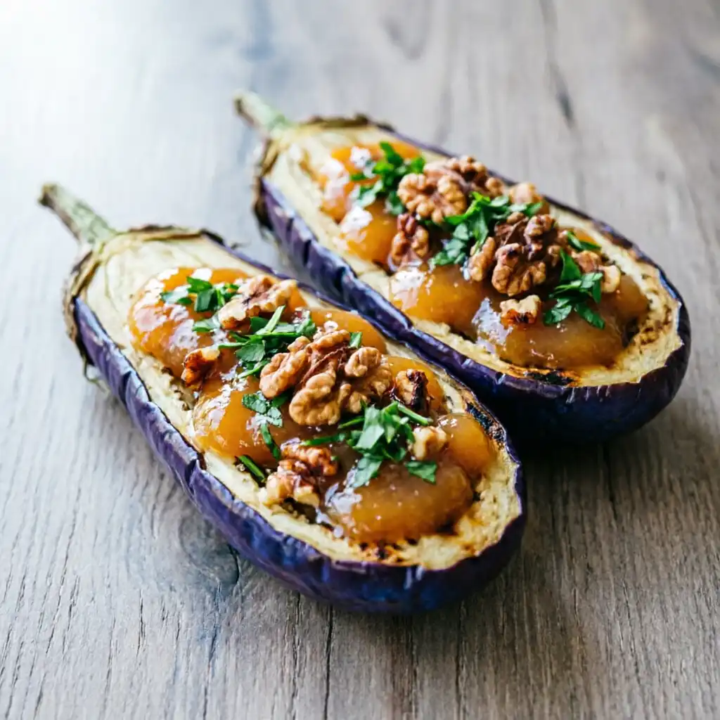 Rellena generosamente cada mitad de berenjena con la mezcla preparada. Vuelve a colocar las berenjenas rellenas en la bandeja y hornea por otros 10-15 minutos, hasta que estén bien calientes y doradas.