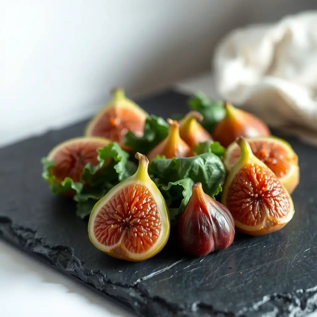 Montaje: Coloca una base crujiente de Acelga en cada plato. Corona con una castaña glaseada y un cuarto de higo encurtido. Sirve inmediatamente para disfrutar de las texturas contrastantes.