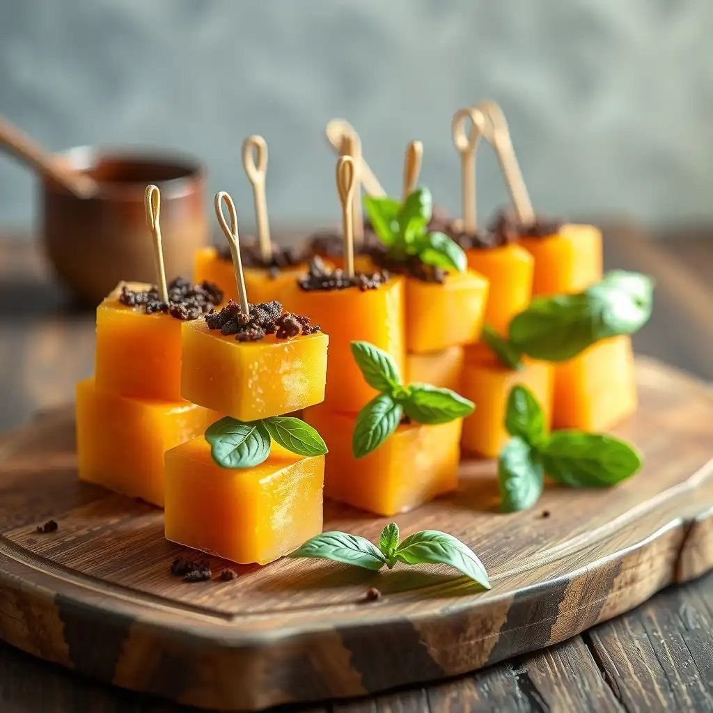 Justo antes de servir, espolvorea generosamente la mezcla de café sobre las brochetas de melón y albahaca. El contraste amargo del café con lo dulce del melón es una maravilla, ¡ya verás!