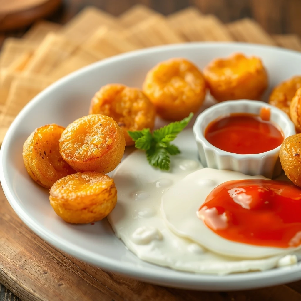 Fríe los buñuelos durante 2-3 minutos por cada lado, o hasta que estén dorados y crujientes. Retira con una espumadera y coloca sobre papel absorbente.