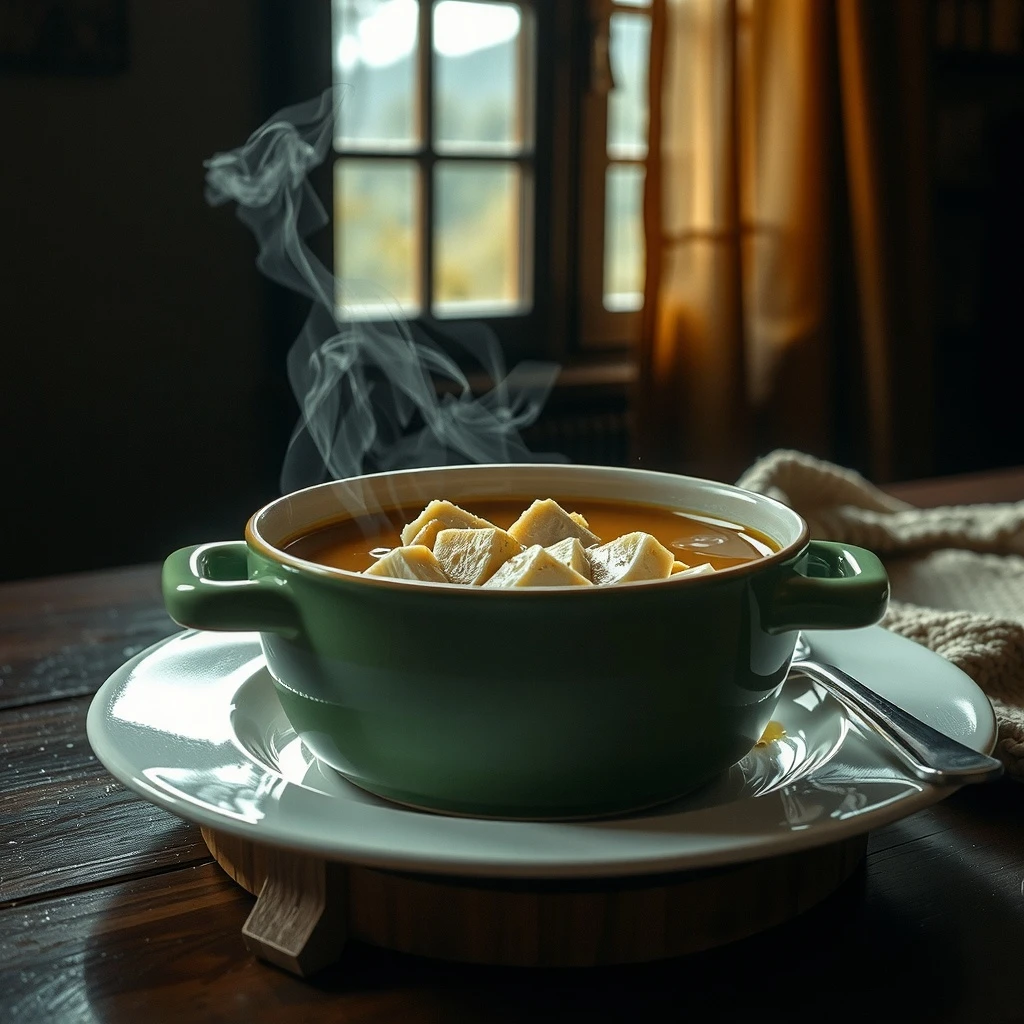Retira la olla del fuego. Con una espumadera o colador fino, retira todos los sólidos, reservando solo el caldo dorado y reconfortante. Desecha las verduras y el pollo cocido si no deseas comerlos.