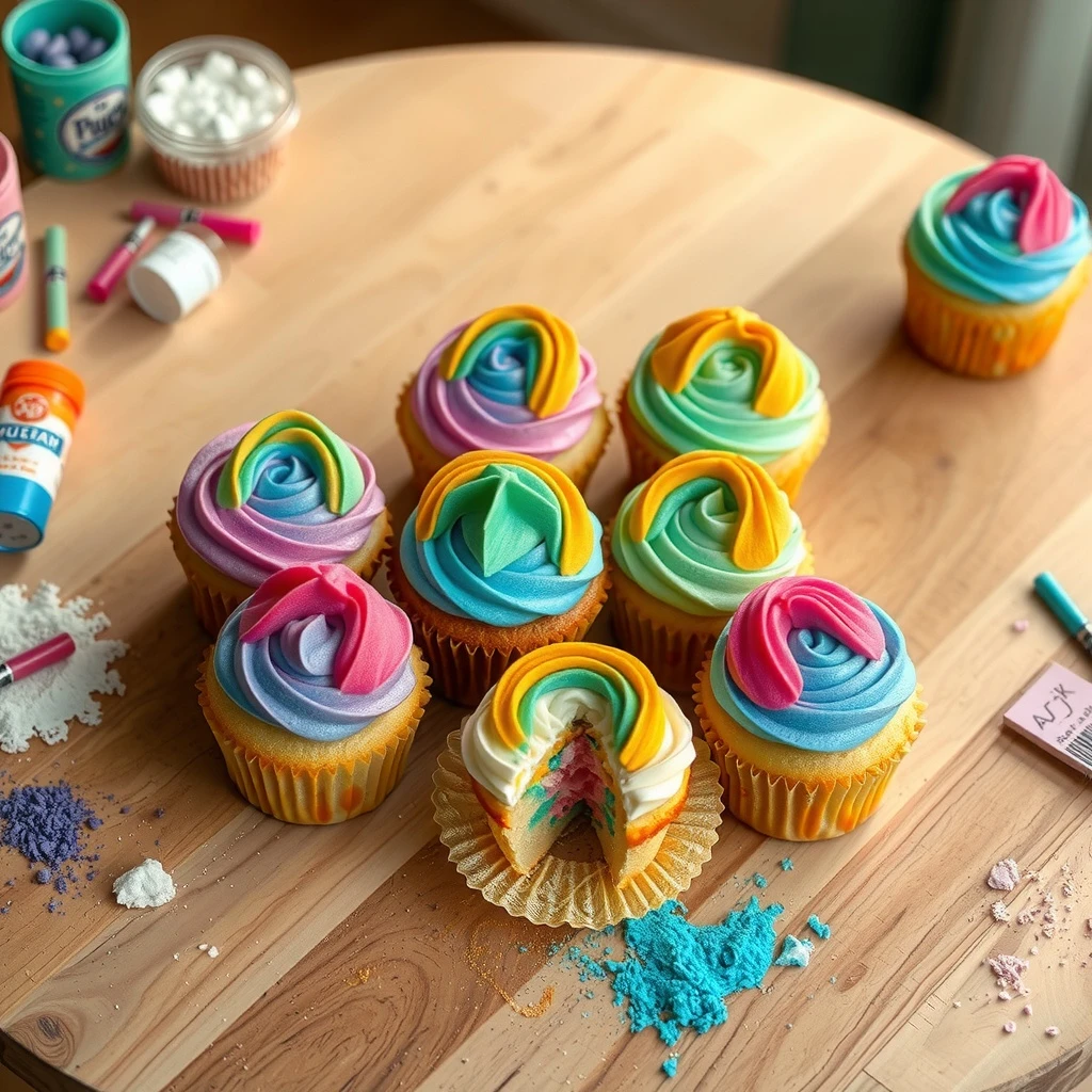 ¡Reto Comunitario! Decora tus cupcakes inspirándote en un arcoíris. Usa tu imaginación para la presentación final. ¡Comparte tus creaciones!