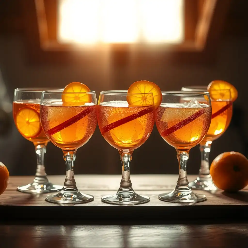 Sirve el Elixir de Aurora en copas elegantes. Decora cada copa con una ramita de hierbabuena fresca y una fina rodaja de naranja en el borde.