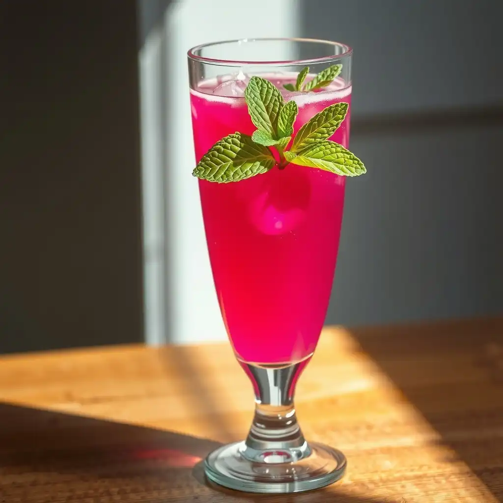 Sirve el elixir en vasos altos y decora cada uno con unas hojas de menta fresca para un toque aromático y visualmente atractivo.