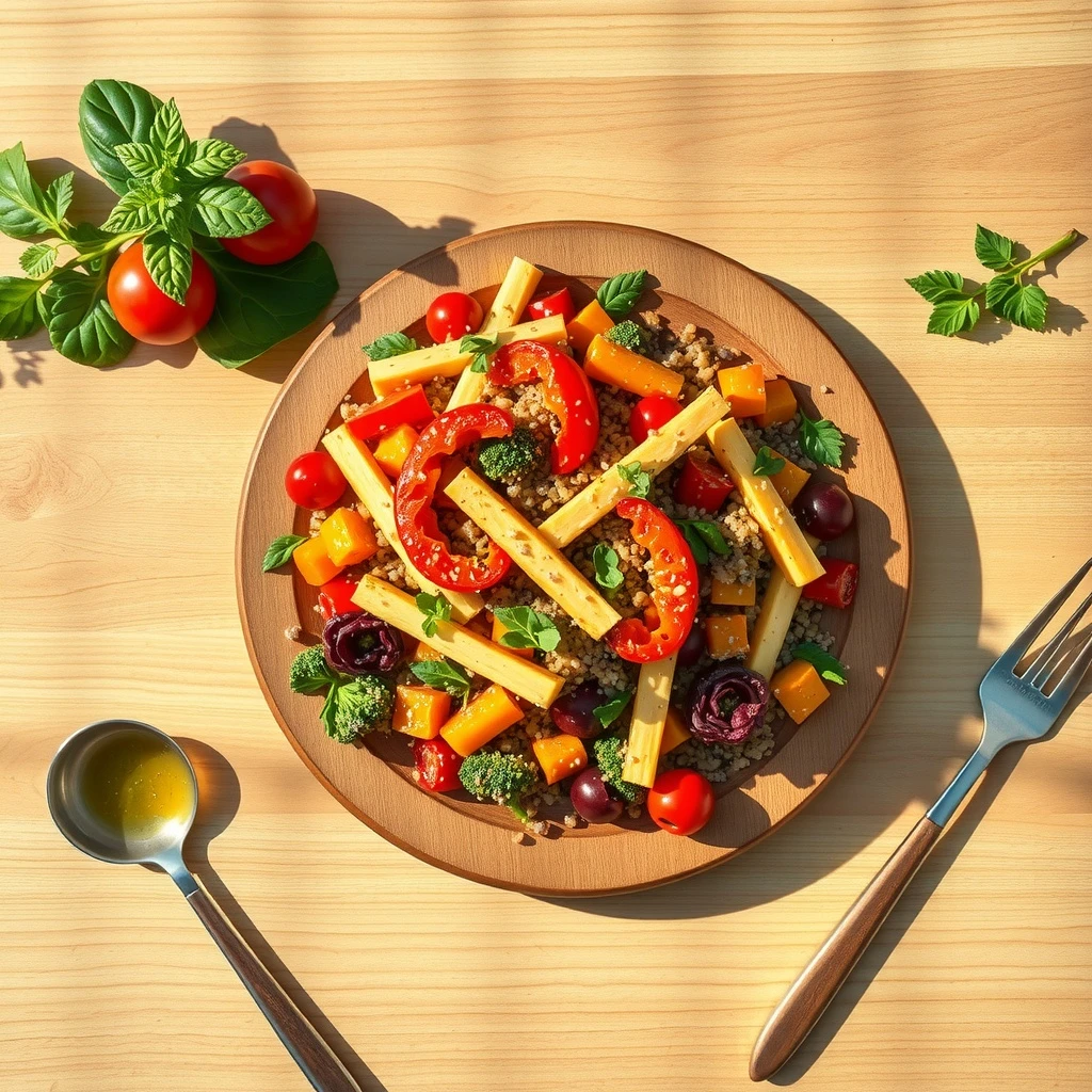 Servir la ensalada tibia inmediatamente. Opcionalmente, decorar con semillas de calabaza tostadas para un toque crujiente.