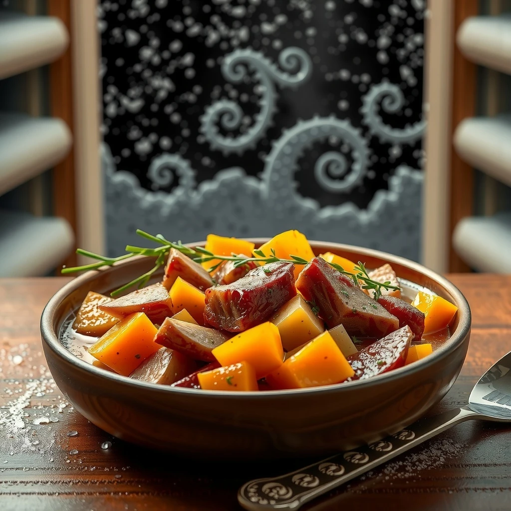 Retirar las ramas de tomillo y romero. Probar y ajustar la sazón con sal y pimienta negra recién molida. Servir caliente, adornado con perejil fresco picado.