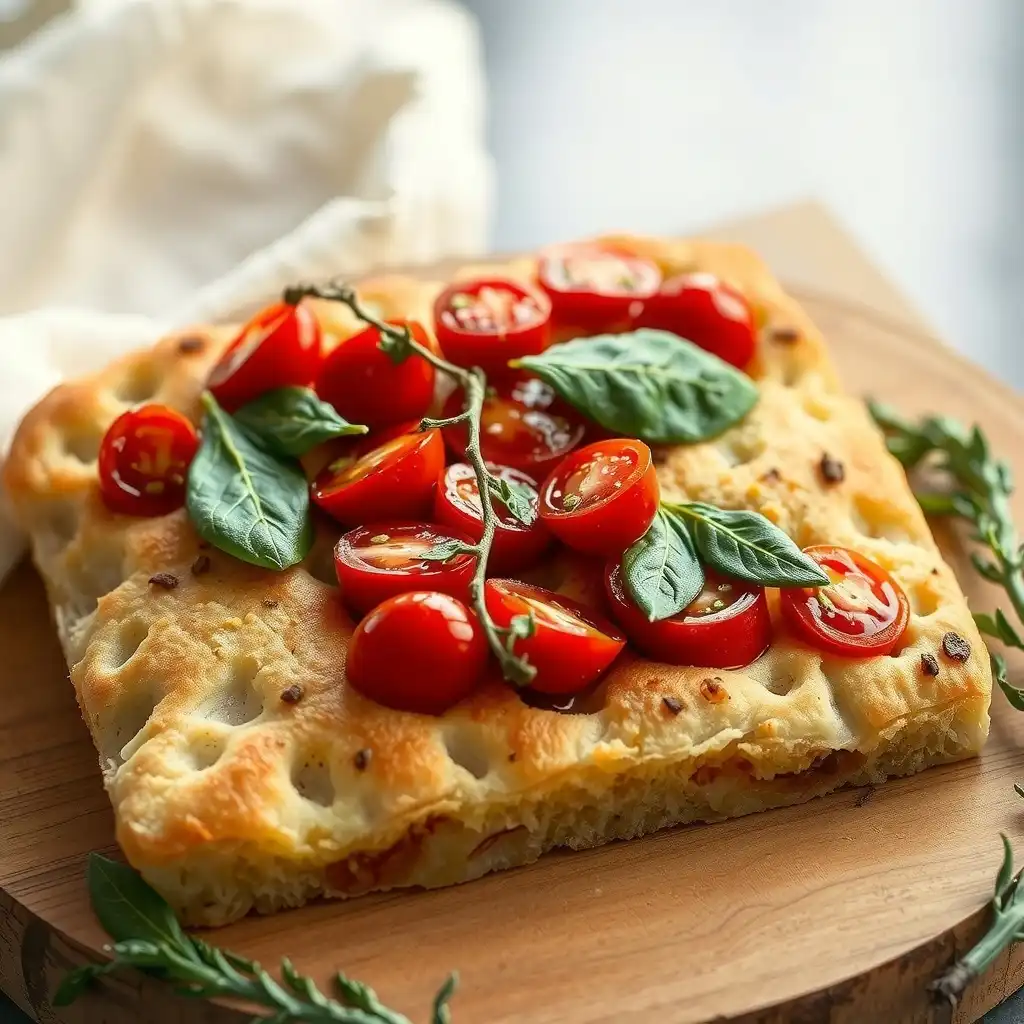 Hornear: llevar al horno precalentado y cocinar por 20-25 minutos, o hasta que la focaccia esté dorada y crujiente. Dejar enfriar ligeramente sobre una rejilla.