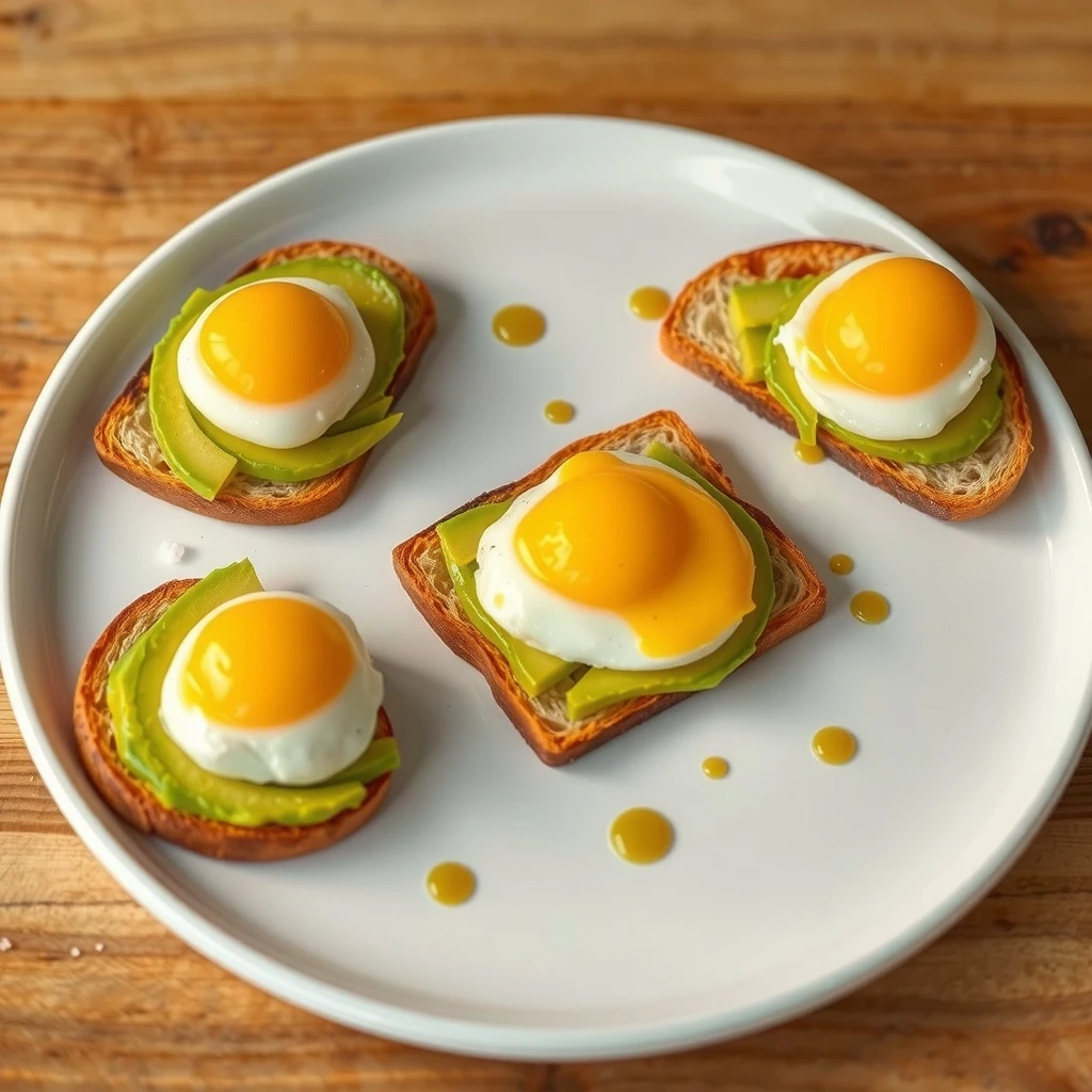 Coloca un huevo encamisado sobre cada tostada con aguacate. Sirve inmediatamente para disfrutar de la textura perfecta.