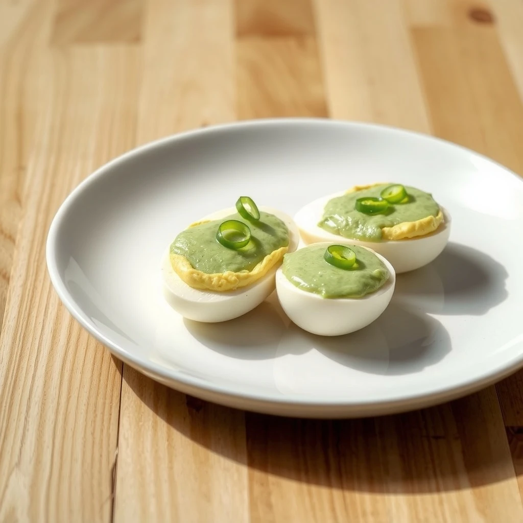 Rellena las mitades de huevo con la mezcla de aguacate y yema, usando una cucharita o una manga pastelera para una presentación más cuidada. Espolvorea con cebollino picado si deseas.