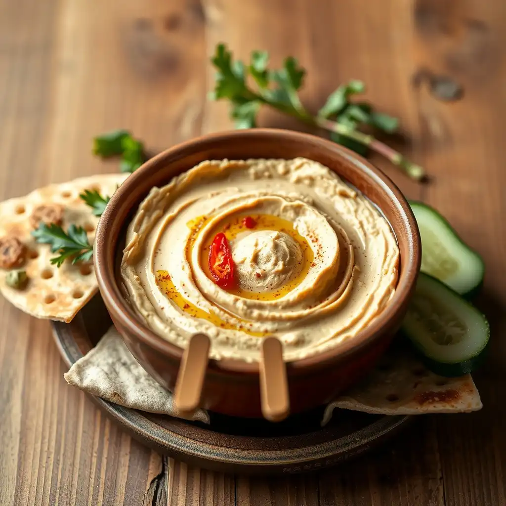 Prueba el hummus y ajusta la sal, el limón o el comino si es necesario. Sírvelo en un bol, haz un remolino con el dorso de una cuchara y rocía con un chorrito de aceite de oliva.