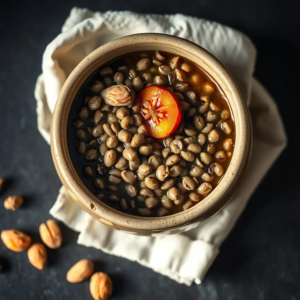 Cocinar a fuego lento durante unos 10-15 minutos, hasta que las ciruelas se ablanden y las lentejas absorban los sabores. Si deseas el efecto ahumado, coloca virutas de madera de naranjo en una sartén aparte, caliéntalas hasta que humeen y coloca la olla de las lentejas encima, tapada, durante 5 minutos.