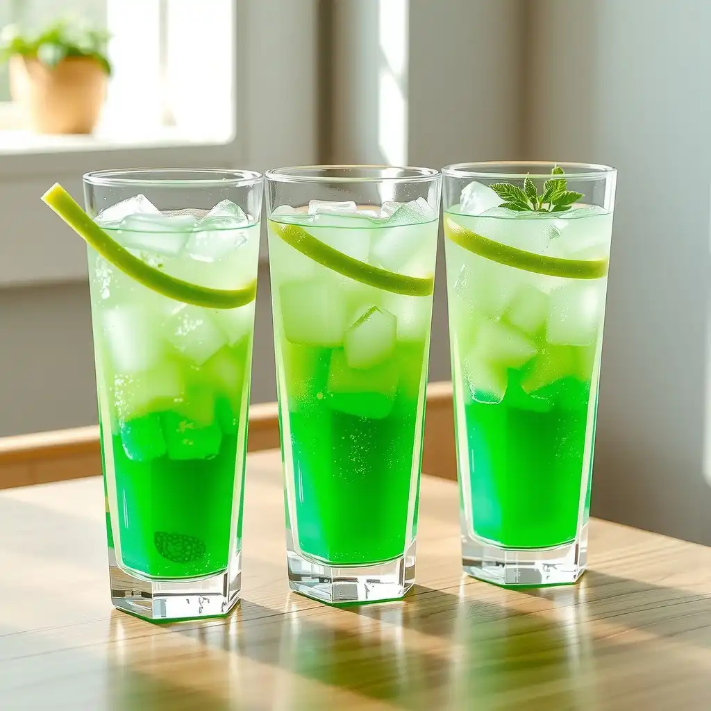 Sirva la bebida en vasos altos, adornando cada uno con rodajas finas de pepino y hojas de menta fresca. Disfrute inmediatamente.
