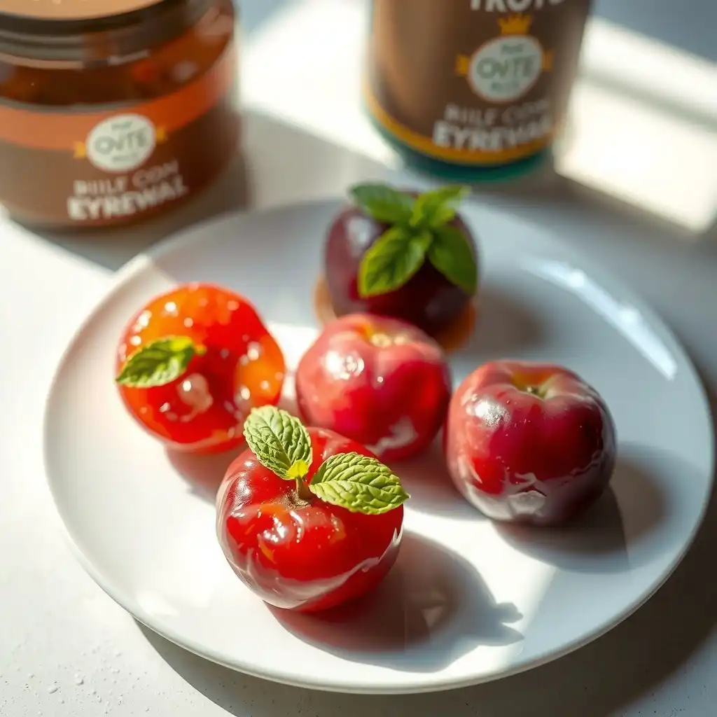 Infusiona la menta: Macera las hojas de menta en un bol con las perlas de ciruela. Deja reposar al menos 30 minutos para que la ciruela absorba el aroma de la menta.