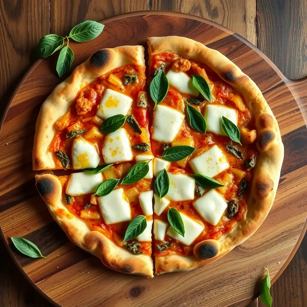 Retira la pizza del horno, espolvorea con la menta fresca picada y corta en porciones. ¡A disfrutar de este manjar veraniego!