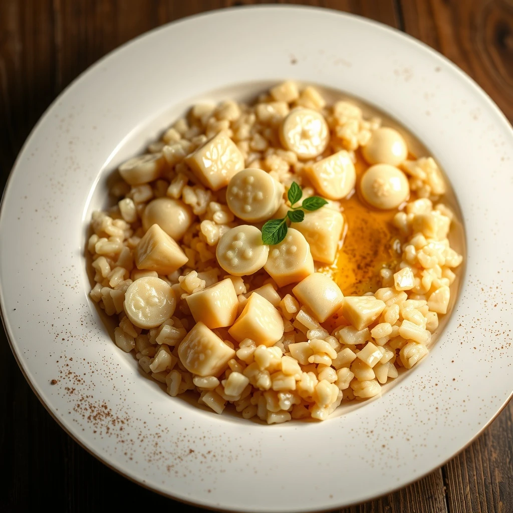 Incorpora los champiñones salteados reservados, el queso Parmesano rallado y el aceite de trufa. Revuelve vigorosamente hasta que el queso se derrita y el risotto esté maravillosamente cremoso.