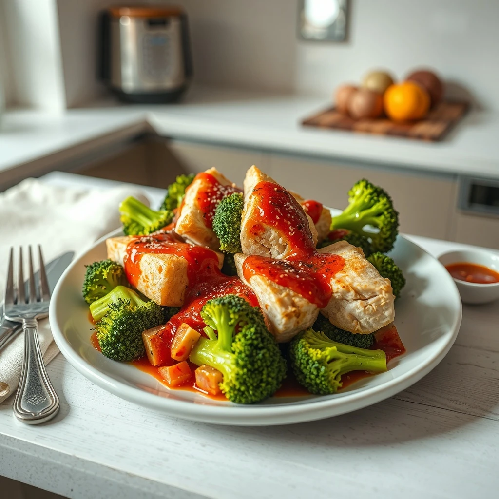Vierte la salsa preparada sobre el pollo y el brócoli. Cocina, removiendo, hasta que la salsa espese y cubra todos los ingredientes uniformemente (1-2 minutos).