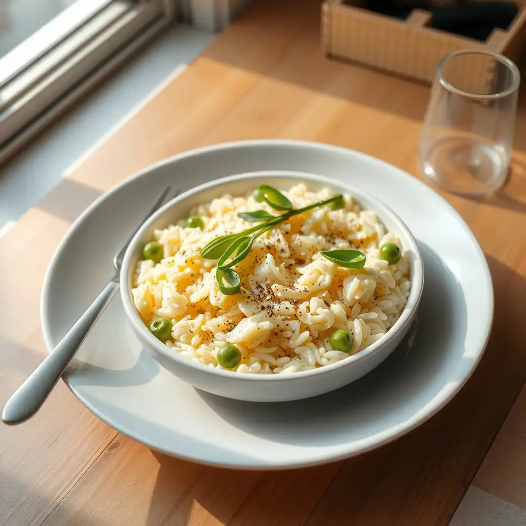 Retirar la olla del fuego. Añadir la mantequilla fría en cubos y el queso Parmesano rallado. Remover enérgicamente para emulsionar y crear una textura cremosa. Probar y ajustar la sal y la pimienta.