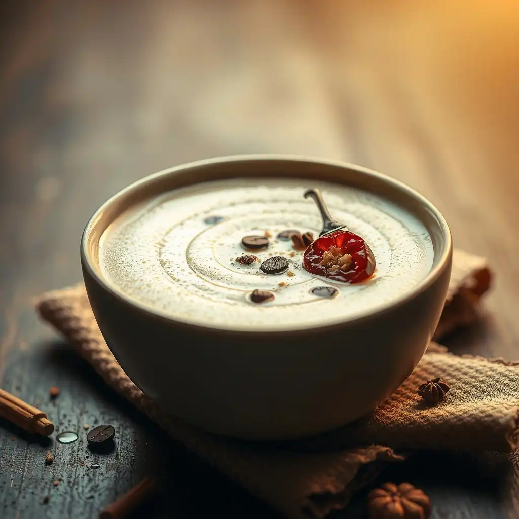 Vierte gradualmente el caldo de verduras o pollo, batiendo constantemente para evitar grumos. Añade la ramita de tomillo.