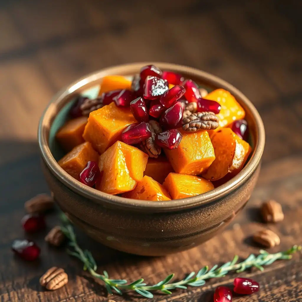 Una vez horneados los boniatos, sÃrvelos en cuencos individuales. Espolvorea generosamente con los arilos de granada y las nueces pecanas picadas.